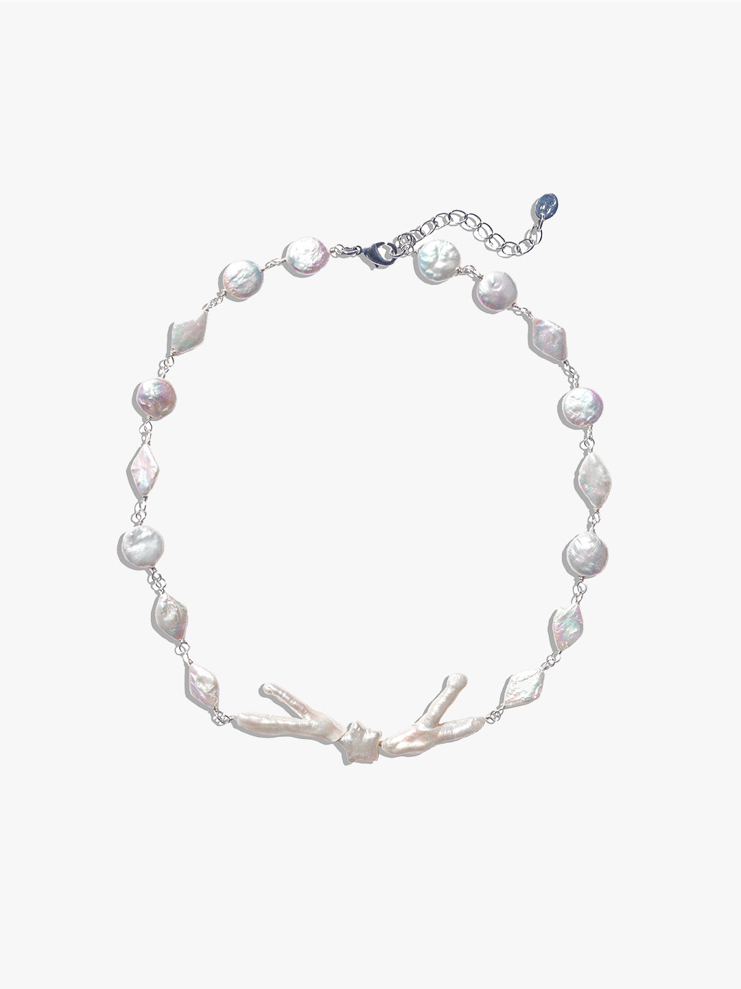 Chain material: Freshwater pearls, 18k white gold plated over silver