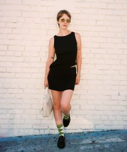 High-waisted skort in a comfy stretch rib fabric. Features built-in shorts for a comfortable and practical fit to a perfect mini skirt. Pair with our matching Erin Tank to complete the look!