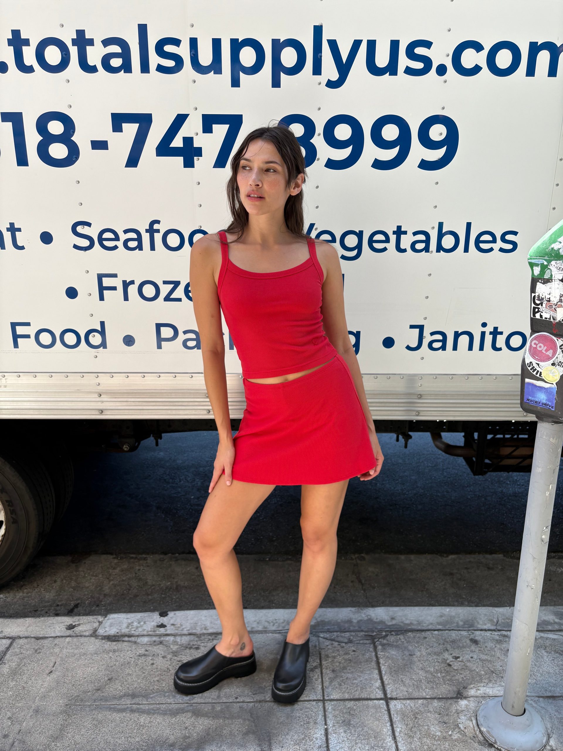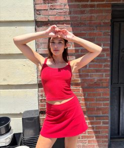 From the LSG Fall Basics collection the Darcy Skort is an ultra mini skirt with a built in short and an elastic waist band. Made in a soft stretch rib fabric. Runs true to size. Pair with our Red Harley Tank for the full look.