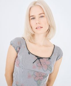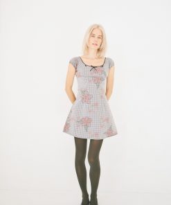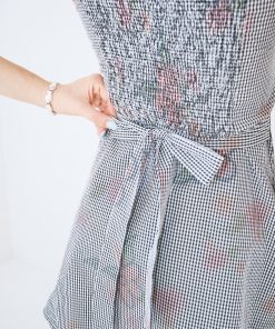 The Flower Gingham Dress from Zemeta is a playful mix of floral charm and gingham, with a fun floral print layered over a black-and-white gingham base. Delicate black trim, cap sleeves, and a sweet bow at the front add to its feminine flair. Featuring a smocked back panel and a tie at the back for a customizable fit, it’s as cute as it is comfortable!