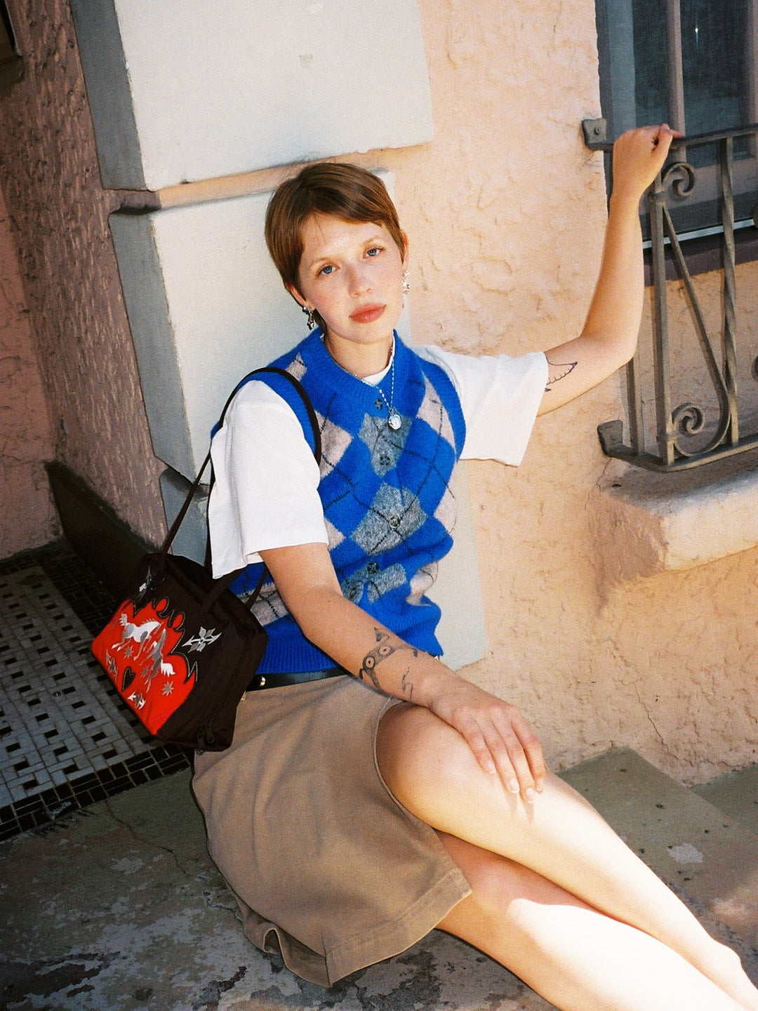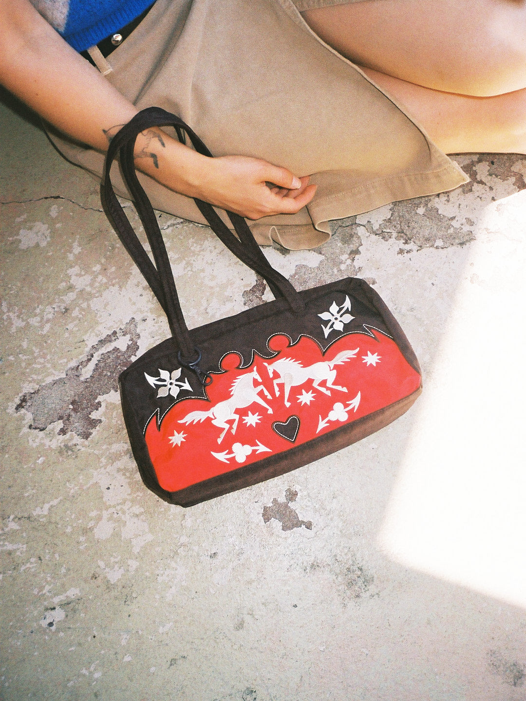 Bowler bag with a fun western print on it. Perfect for your everyday essentials.