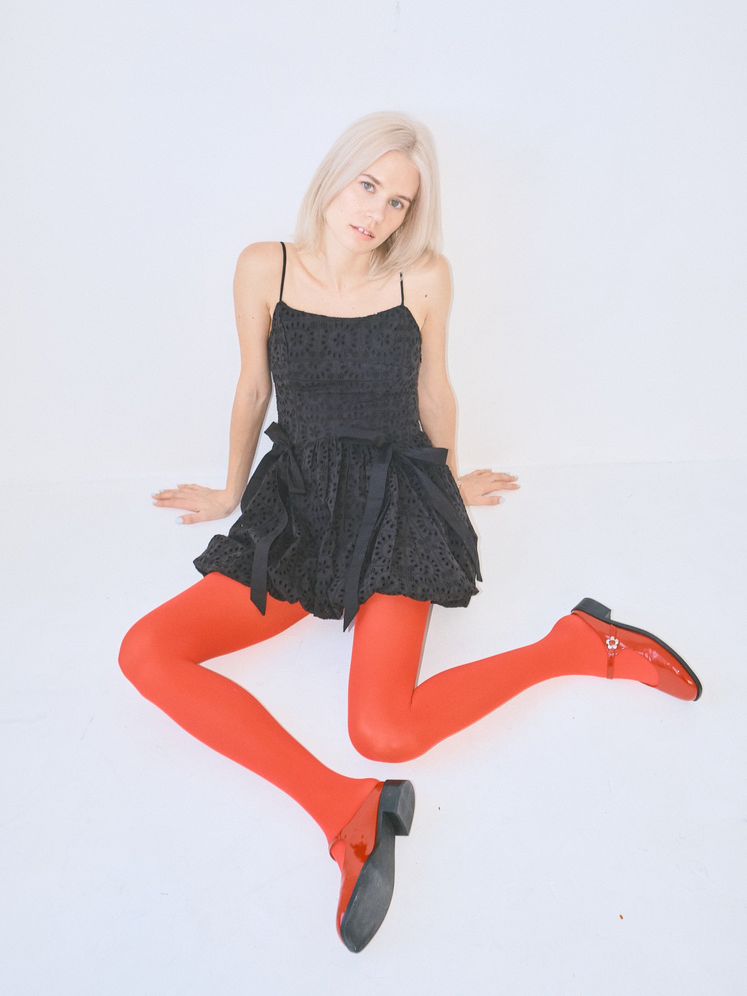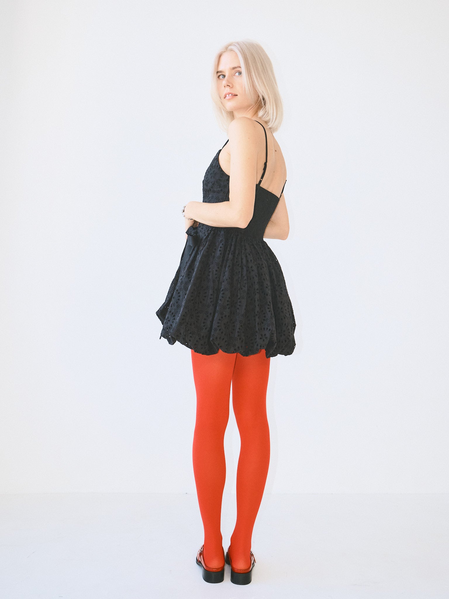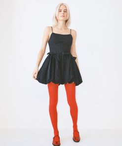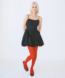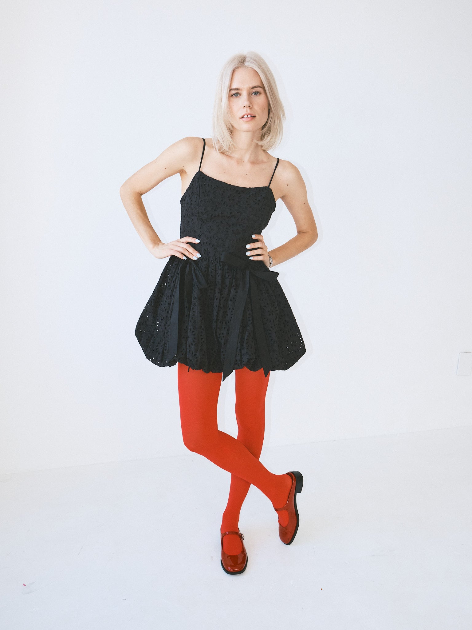 Be ready to flaunt your style in the Penelope Mini Dress – Black Broderie, a fun and flirty apron dress with a corset-inspired bodice, playful waist seam accents and adorable bow embellishments that perfectly gather into a full and flowy skirt.